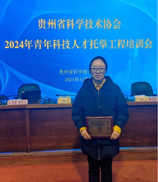 2024年12月5日,贵州省科协2024年青年科技人才托举工程颁证培训会在贵阳举行,活动旨在进一步助力全省科技后备人才队伍建设,促进优秀青年科技人才脱颖而出,得到更多挑大梁、担重任、当主角的机会。大会公布了2024年贵州省青年科技人才托举工程入选对象名单,贵州理工学院材料与能源工程学院李娟老师凭借突出的科研能力和丰硕的学术成果成功入选,标志着我校在青年科技人才培养方面取得了新的突破。