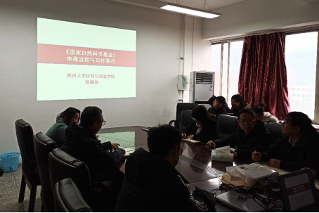 本网讯(材料与能源工程学院 伍剑明/文字 伍剑明/图)2020年12月24日上午,由校科技处牵头,材料与能源工程学院具体实施的“材料与能源工程学院2021年国家自然科学基金项目申报培训会”在802会议室举行,会议聘请贵州大学材料与冶金学院副院长、贵州省第十一批优秀青年科技人才培养对象陈朝轶教授做专题讲座,由秦庆东副院长主持。科技处处长黄芳应邀出席了会议,材料与能源工程学院副院长周登凤及学院全体教师参加了会议。