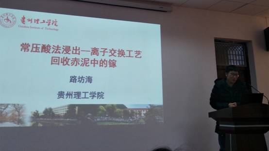 2017年12月1日,材料与冶金工程学院路坊海副教授受邀参加2017年贵州省冶金工程与过程节能重点实验室第二次学术交流会,并在会上作报告,报告题为“常压酸法浸出——离子交换工艺回收赤泥中的镓”。此次会议由该重点实验室归属单位贵州大学材料与冶金学院承办,会议由重点实验室负责人李长荣教授主持。贵州大学、贵州理工学院、贵州师范大学、贵阳铝镁设计研究院等单位的相关专业专家及学者参会并作报告。