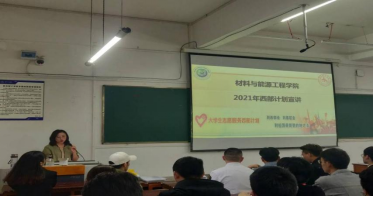 本网讯(材料与能源工程学院文字/方永其 图片/方永其)为进一步做好我院大学生志愿服务西部计划工作,弘扬志愿精神,转变大学生的择业就业观念,引导大学毕业生到西部、到基层、到祖国最需要的地方建功立业。2021年4月21日晚,材料与能源工程学院18级辅导员代海艳,在3教113D教室向我院学生进行“西部计划”宣讲。