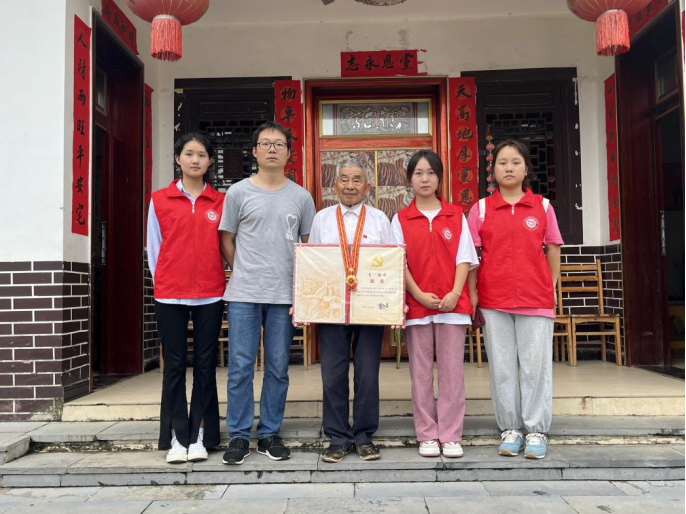 随后观察团到达团结村老支书黄大发爷爷的住处拜访黄大发爷爷,黄大发爷爷与观察团分享大发天渠的建造过程,讲述了自大发天渠开始建造至今当地的民生变化以及产业发展。最后黄大发爷爷提出青年一代要有吃苦耐劳、坚持不懈、艰苦奋斗、无私奉献的精神,鼓励青年人要认真学习,用自己所学的专业知识和技能积极为人民、为民族、为国家做贡献。