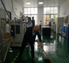 本网讯(材料与冶金工程学院 文字/钟代飞 图片/钟代飞)2019年10月9日13:30,材料与冶金工程学院教师党支部开展“庆祝中华人民共和国成立70周年 传承红色革命精神”主题党日活动之“志愿服务活动”,党支部师生党员一起为身边群众做实事好事,即打扫学院的实验室。