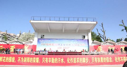 青春年少,朝气蓬勃,理工学子,奋勇拼搏——贵州理工学院第五届校运会开幕式于4月18日上午八点在田径场隆重举行,校领导及学校中层干部出席本次开幕式。