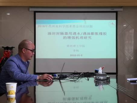 会上,我院四位教师分别就《基于离子印迹磁性介孔吸附材料用于稀土分离的基础研究》、《生物材料聚乳酸合金体系的微观相态演变及其发泡机理的研究》、《油田封隔器用遇水/遇油膨胀橡胶的增强机理研究》和《热氧老化对长玻纤增强聚丙烯阻燃性能影响的研究》四项联合基金项目的开展完成情况进行了汇报,并顺利通过了结题验收。