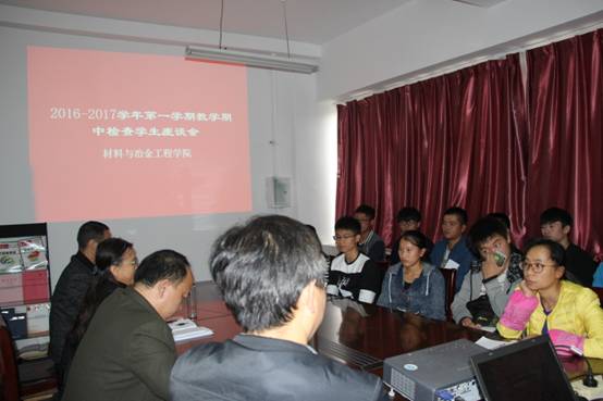 正值教学期中,为了全面了解本学期开学以来教学的运行情况和教师教学情况,及时发现并解决教学过程中存在的问题,加强教学过程管理和教学质量监控,推动学风建设,材料与冶金工程学院2016-2017学年第一学期学生座谈会于11月4日13:00在802会议室举行。会议由党总支副书记潘健林主持,院长伍玉娇、教学秘书、四个教研室主任、辅导员和2016级6个班的20名学生代表参加。
