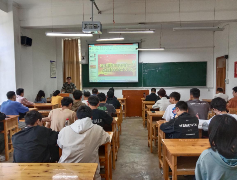 会上,汪树穹老师从依法服兵役的重要性、个人成长进步空间、征兵流程、经济补助、政策优待、学业优待等方面的知识进行了深入解读,并详细介绍了入伍、复学、提升学历、就业、事业单位及国企的前置招考、部队等级晋升、退役军人保障等方面优惠政策。并集体观看了令人心潮澎湃的征兵宣传片。宣讲结束后,汪树穹老师对同学们提出的应征入伍体检、政审、定兵等方面的具体问题进行了详细解答。会议最后,夏雍副书记呼吁同学们要切实增强当代大学生的责任感与使命感,自觉将个人理想与国家发展相结合,用热血与青春书写无悔人生。