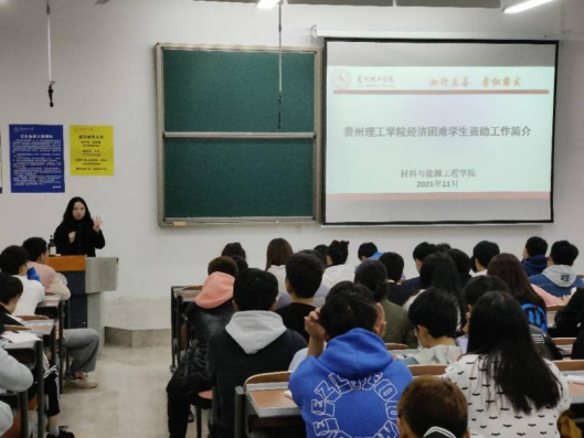 为引导2021级新生尽快适应新角色,融入大学新生活。材料与能源工程学院于2021年11月8日,在贵安校区G2109,举办了“2021级新生学业生涯规划讲座”。学院2021级辅导员金先义主持并为同学们做“学业生涯规划指导”、“资助教育”、“诚信教育”、“军训与国防教育”、“心理健康教育”以及“榜样教育”,2021级全体学员参加讲座。