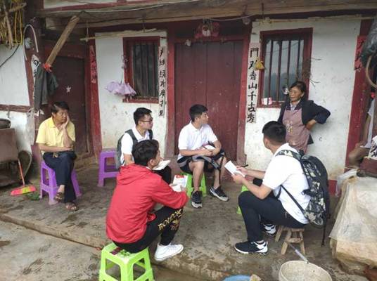 2019年7月23日,材料小分队又开始了一天的走村入户摸底调查。上午,同学们来到进新村乃扒组的张文家,他家是一般贫困户,大人都外出打工了,家里只剩两个留守儿童,房子是快要倒塌的木板房,漏风漏水,随后进入李明学家,主人热情好客,周到贴心,他家孩子多,属于特困户,房屋是政府新修的,虽然很小,但是很温馨。
