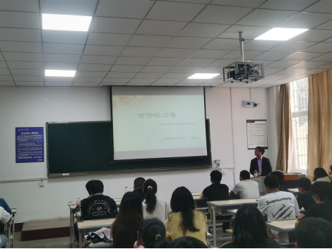 2022年4月8日,材料与能源工程学院党总支组织委员何杰军博士在2110教室为材料191班、材料192班80多名学生开展以“信仰的力量”为主题的道德讲堂。