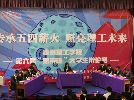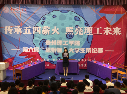 本网讯(材料与冶金工程学院 文字/方涛 图片/赵耀)2019年5月27日13:30,贵州理工学院第六届“思辩杯”大学生辩论赛决赛在逸夫小礼堂正式拉开帷幕,材料与冶金工程学院与土木工程学院代表队围绕主题“青春偶像有利还是有弊”展开激烈对决。