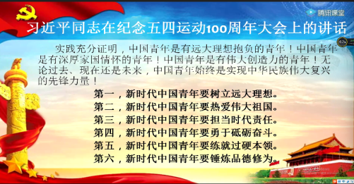 周登凤副院长还为大家讲述了五四运动的发展历史和五四运动的精神内涵。习近平总书记在纪念五四运动100周年大会上的讲话中指出,五四运动以磅礴之力鼓动了中国人民和中华民族实现民族复兴的志向和信心。新时代青年是实现中华民族伟大复兴的磅礴力量,新时代青年要勇敢担负起新时代党赋予的光荣使命,要做有理想、有本领、有担当的时代新人。要到人民群众中去,到新时代新天地中去,在担当中历练,在尽责中成长,并展示了习总书记向新时代青年提出的六点要求。