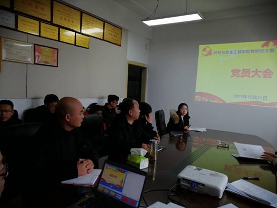 本网讯(材料与冶金工程学院 龙绍檑/文字 龙绍檑/图片)2019年12月21日,材料与冶金工程学院教师党支部在行政楼802会议室召开了关于讨论孙同椿等6名预备党员转为中共正式党员,关于接收易利艳等10名同志为中共预备党员的支部大会。支部全体师生党员参会,会议由党支部书记李娟同志主持。