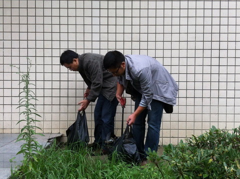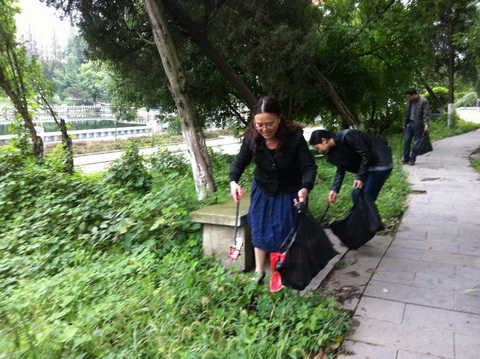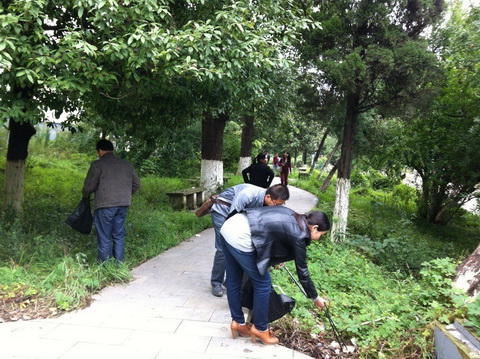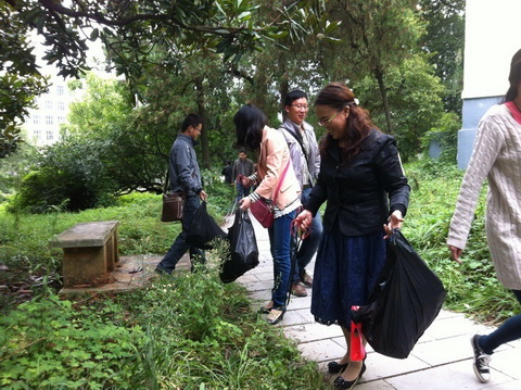 2013年9月6日下午,全体教师在校党委书记和院长的带领下,进行“环境卫生大扫除活动”。下午2:30全体教师在行政楼集合后整装出发,拿上清扫用具“扫把”、“火钳”,来到自己部门或学院划分的卫生区域。材料与冶金工程学院全体教师在伍玉娇院长的带领下,10余名学院教师来到第二教学楼和第三教学楼外围进行清扫,经过2个小时的清扫,各位教师都收获了满满一袋“战利品”,烟头、纸屑、包装袋、饭盒等装满了数十个袋子,虽然老师们头上冒着汗珠,有的老师甚至手磨起了水泡,但是看到自己亲手美化的校园,心里非常高兴。本次卫生大扫除美化了校园,理工将以崭新的姿态迎接新生。“美在于发现,同时也在于打扮”,相信全体教师用自己的行动将能感染全体师生,共同营造良好的校园氛围。通过本次环境卫生大扫除活动,教师们自己加深了对环保的理解,同时也不断提醒自己在以后的教学过程中,不断要上好课,还要言传身教,加强学生思想品德方面培养,环保从自身做起,从身边事做起,共同维护我们美丽的理工学院。