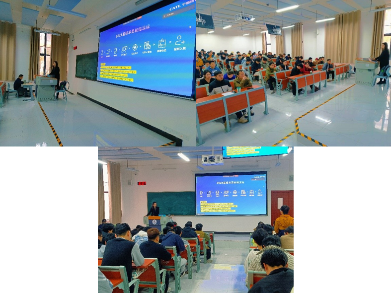 杨晓青女士从公司的发展历史,企业文化,员工的基本福利等方面展开介绍,同学们也踊跃提问,积极发言,整个宣讲会在欢快的气氛下进行。宣讲会结束后,紧接着进入简历投递环节,杨女士表示:希望大家积极投递简历,公司会在3个工作日内安排面试,面试通过后5个工作日内发录用通知。