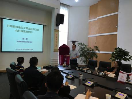 讲座内容主要包括纤维素化学与物理、离子液体在高分子材料中的应用、功能化聚合物复合材料、新型聚合物纤维等。张军研究员的精彩报告让老师们受益匪浅,同时也丰富了学生们的知识,开阔了学生们的视野,让他们对高分子材料有了更深层次的认识。