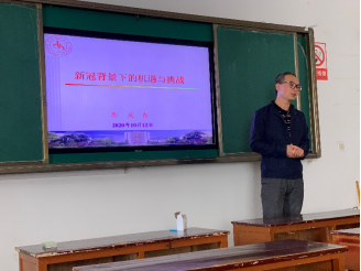 (材料与能源工程学院 文字/吴倩 图片/罗源)2020年10月12日下午,材料与能源工程学院副院长秦庆东为能器171班上题为“新冠背景下的机遇与挑战”的思政课,并进行了就业辅导,讲座由班主任罗源老师主持,能器171班全体参加。
