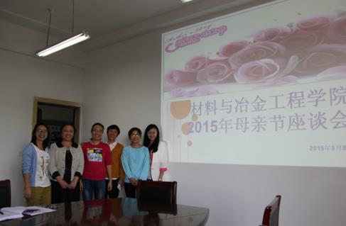 2015年5月8日,在母亲节即将到来之际,材料与冶金工程学院分工会在802会议室组织举办了感恩母亲节主题座谈会。材料学院女教师积极参与。