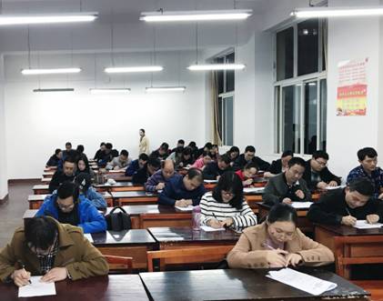 本网讯(材料与冶金工程学院文字/邓珏图片/邓珏)为了做好本科教学工作合格评估,掌握我院教职工的评估知识学习情况,2019年11月1日晚7点至9点,学院在1-313教室组织了评估知识考试(主要围绕学校合格评估自评报告),院领导伍玉娇、潘健林、周登凤共同监考,其他教职工作为考生参加了当天的考试。