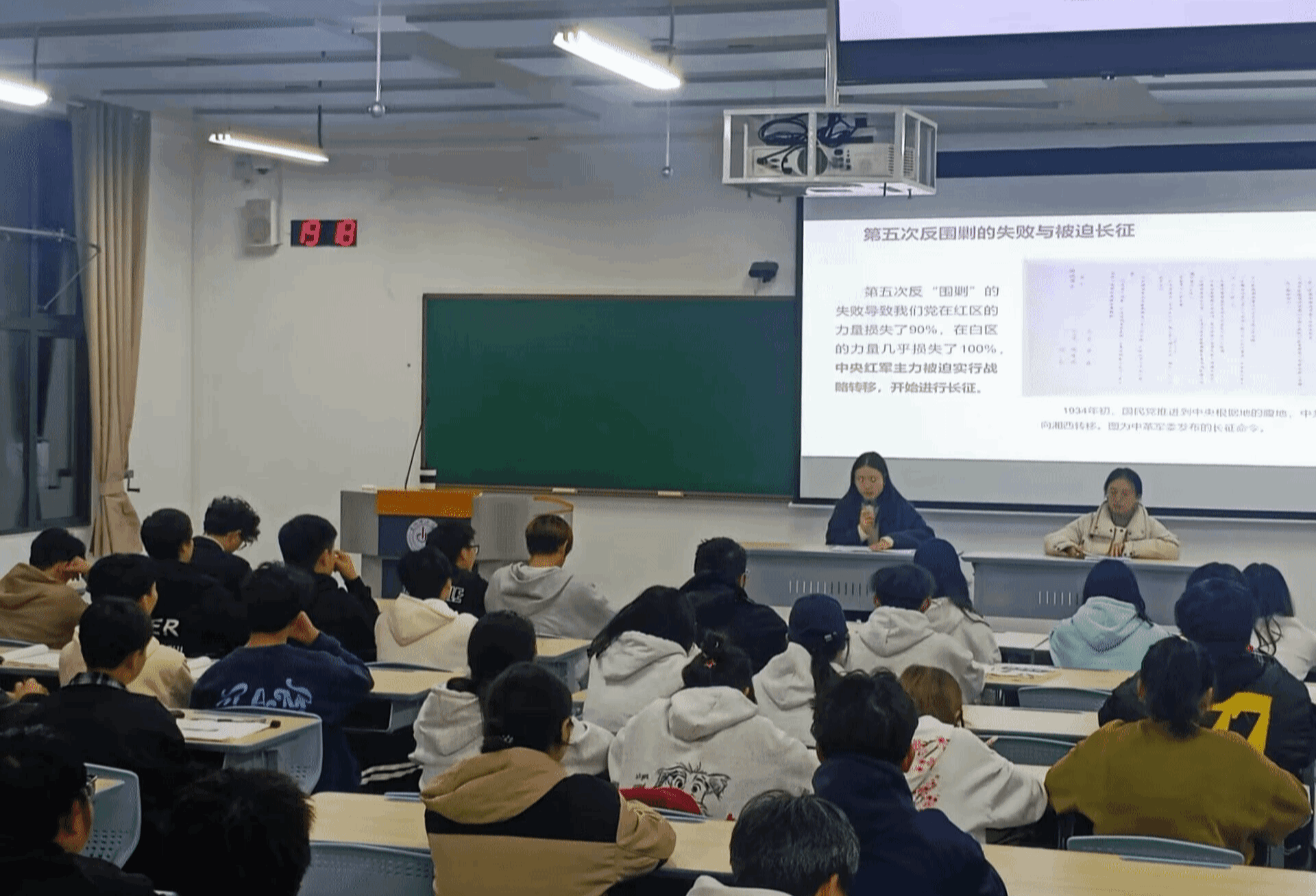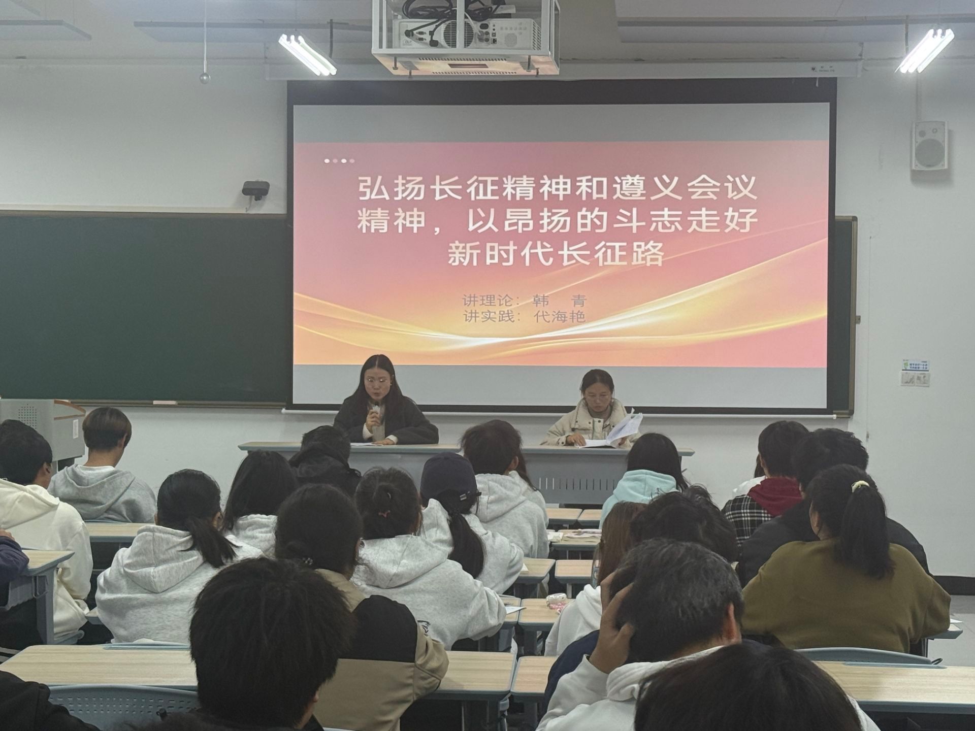 2025年11月6日,材料与能源工程学院代海艳、韩青两位老师在敏学楼202教室,面向2025级学生开展以“弘扬长征精神和遵义会议精神,以昂扬的斗志走好新时代长征路”为主题的二人讲活动。两位老师分别从理论阐释与实践案例出发,带领学生重温遵义会议历史,感悟长征精神的时代价值,为青年学子走好新时代长征路注入精神动力。