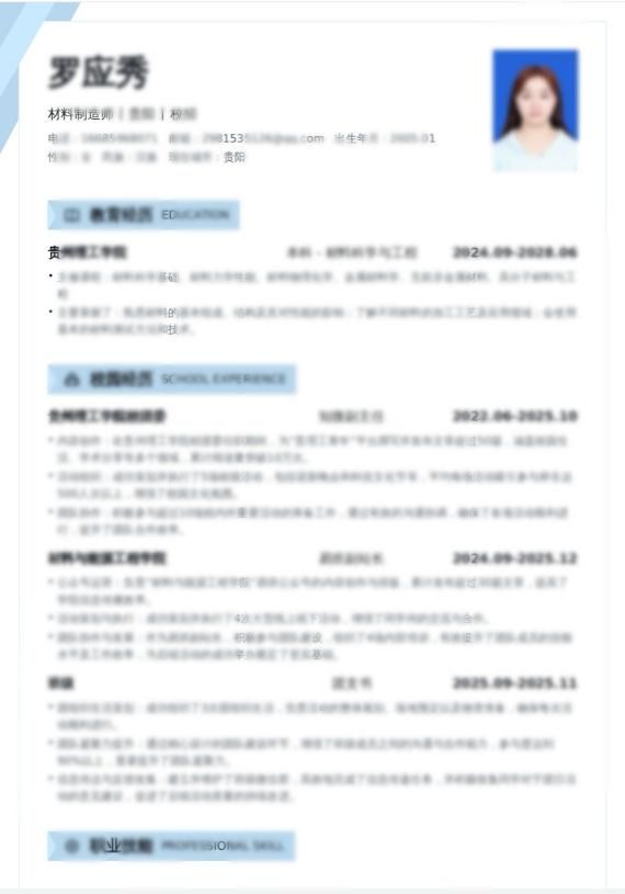 为丰富学生职业发展指导形式,强化就业核心技能培养,搭建精准高效的求职准备平台,2025年11月23日,贵州理工学院材料与能源工程学院第八届简历比赛圆满落幕。本次活动以“‘简’自我风采,‘历’职场未来”为主题。
