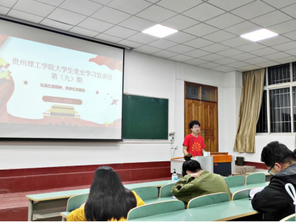 本网讯(材料与能源工程学院 文字/韦启杏 图片/韦启杏)“小小红船承载千钧,播下了中国革命的火种,开启了中国共产党的伟大航程”。“红船”是中国共产党的“母亲船”,领航中华民族伟大复兴的巍巍巨轮。为了更好地从党史中汲取智慧和力量,2021年5月24日晚,材料与能源工程学院邀请到贵州理工学院党史宣讲团成员-杨海龙同学,在蔡家关校区2教111教室,为材料192班及材料193班全体同学开展了以“弘扬红船精神,传承红色基因”为题的党史学习宣讲活动。