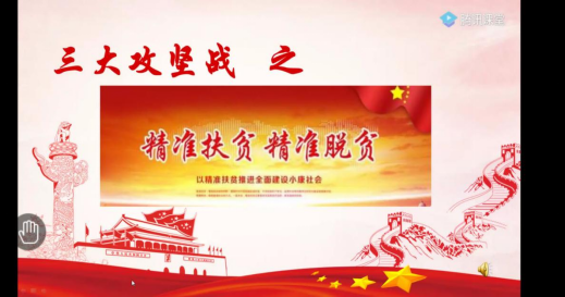 本网讯(材料与冶金工程学院 文字/高进王妍图片/高进)“履职尽责,不辱使命,脱贫攻坚收官之年,我们将一鼓作气、尽锐出战、毫不松懈,为坚决夺取攻坚脱贫贡献力量。”2020年3月20日下午,贵州理工学院道德讲堂特邀曾挂职遵义汇川区人民政府副区长的我校材料与冶金工程学院副院长秦庆东教授通过腾讯课堂以线上授课的方式为同学们讲述了“三大攻坚战之精准脱贫攻坚”。部分师生代表参加了此次活动,本次活动由材料与冶金工程学院学生科副科长罗咏梅同主持。