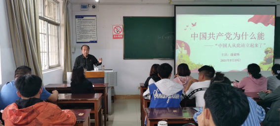 本网讯(材料与能源工程学院 文字/方永其 图片/方永其)在党史学习教育开展得如火如荼之际, 2021年5月19日19:00在3教214D教室,学院党总支书记潘健林同志为100多名入党积极分子上了一场中国共产党为什么“能”——中国人从此站立起来了为主题的党课,本次党课由辅导员代海艳老师主持。