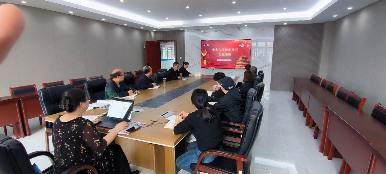 2025年4月17日上午,教师党支部在毓知楼419会议室开展深入贯彻中央八项规定精神学习教育,党支部书记刘珊同志以《中央八项规定及其实施细则》为题给支部全体党员上专题党课。