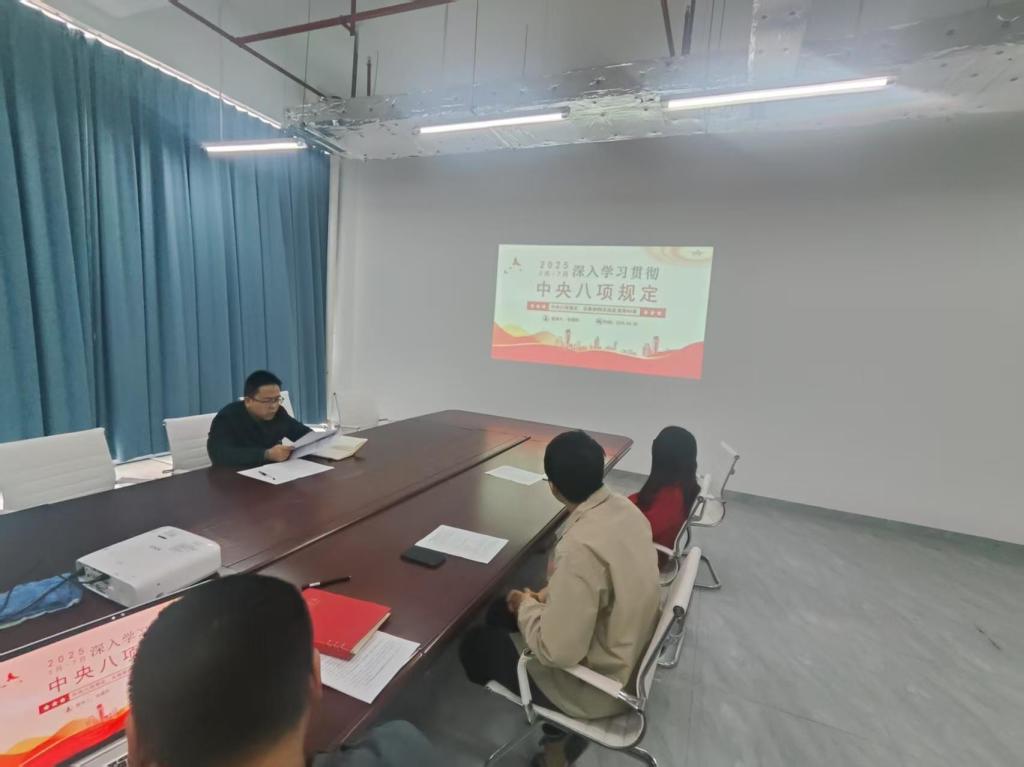 为持续推进深入贯彻中央八项规定精神学习教育走深走实,进一步加强教师党员的纪律意识和作风建设,2025年4月25日上午,轻金属材料重点实验室党支部在含光楼202会议室开展深入贯彻中央八项规定精神学习教育,党支部书记张建刚同志以《深入贯彻中央八项规定精神学习教育》为题给支部全体党员讲授专题党课。