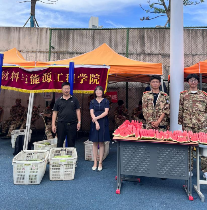 本网讯(图/杨鑫、侯钰锋 文/邓珏)2024年9月11日下午,材料与能源工程学院党总支副书记夏雍、2024级辅导员邓珏一同前往训练场地,亲切慰问全体参与军训的2024级材料学院新生。