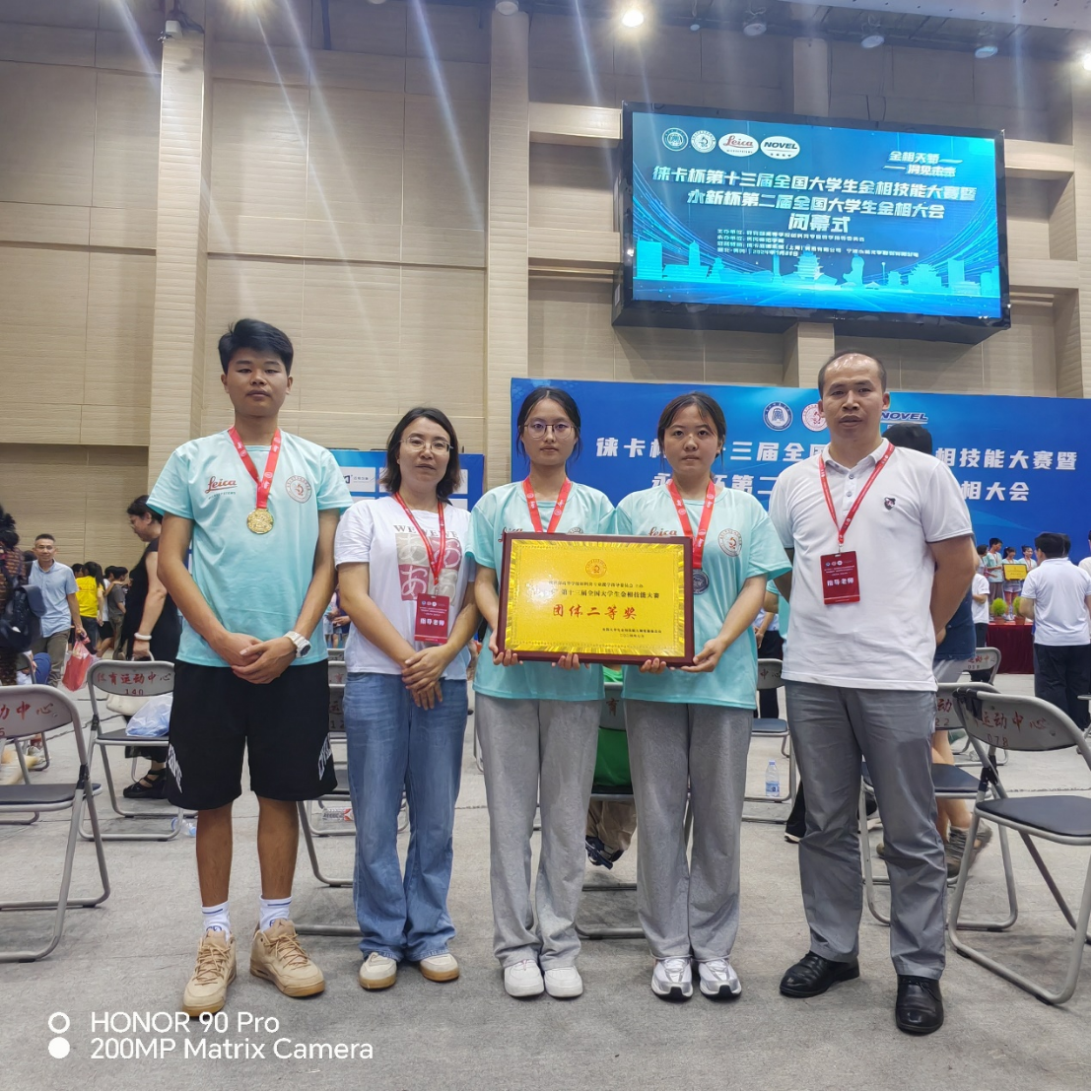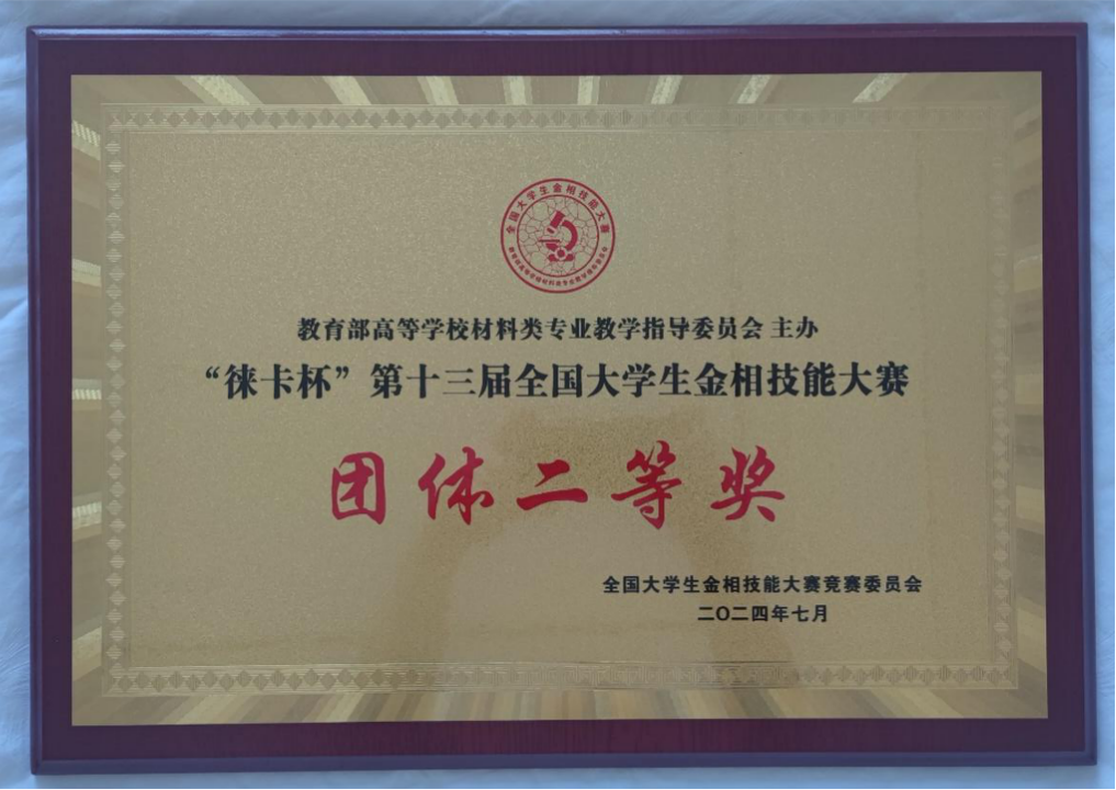2024年7月25日至30日,由教育部高等学校材料类专业教学指导委员会主办,黄冈师范学院承办的“徕卡杯”第十三届全国大学生金相技能大赛决赛在湖北黄冈举行。我校由材料与能源工程学院凌敏和莫远科两位老师指导的代表队在大赛中取得优异成绩,其中,焊接221班的任顺超同学获一等奖,材料232班的肖茜娴和能器232班的丁卓玉两位同学均获二等奖,团体获二等奖。