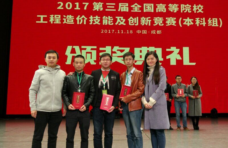 由我校经济管理学院龙亮老师带队参赛的贵理工BIM中心温锐锋、蔡瑞、杨勇三位同学在第三届全国高校工程造价技能及创新竞赛中,获得软件计算建筑与装饰工程量一等奖(此类别排名第二)、团体三等奖的优异成绩。该赛事是全国工程管理与工程造价专业最具代表性的赛事,本届共有来自全国127支队伍参赛,我校代表队是贵州省推选的3支代表队伍中唯一获奖的参赛队伍。