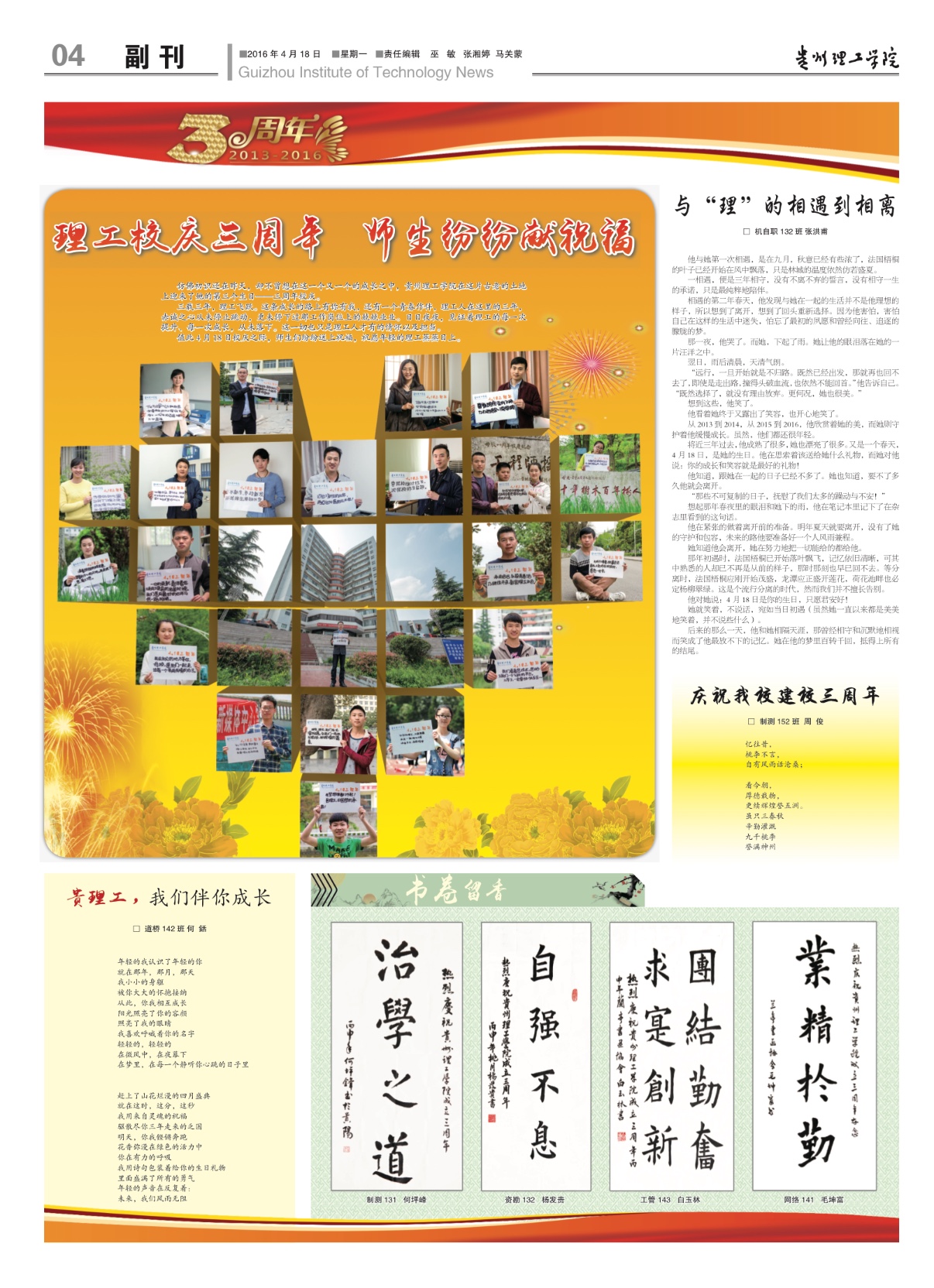 本网讯(宣传部 王爽)近日,中国高校校报协会公布了2016年度中国高校校报好新闻评选结果,我校化工学院化学工程与工艺141班霭均同学的参评作品《围棋国手马晓春九段走进理工座谈对弈》荣获新闻摄影类一等奖;宣传部巫敏老师责编的《贵州理工学院校庆专刊》荣获版面类三等奖。