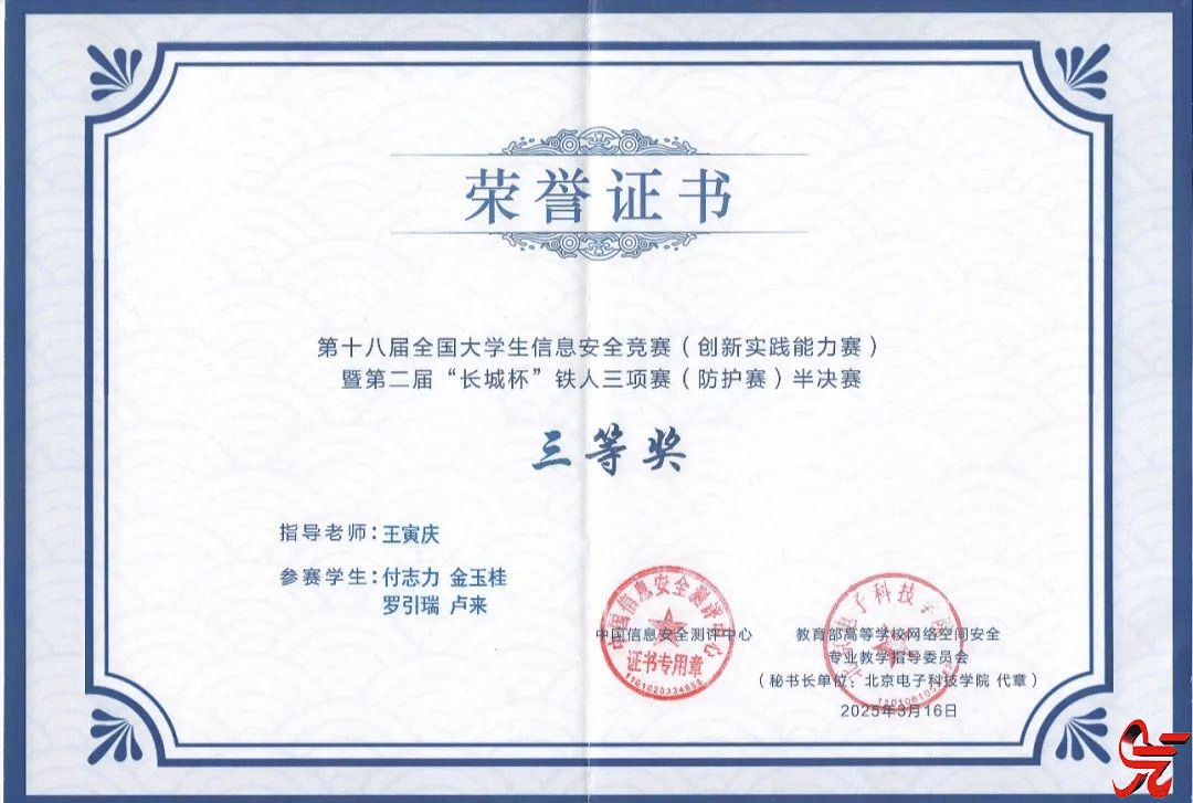 得奖!!全国大学生信息安全竞赛暨“长城杯”铁人三项赛