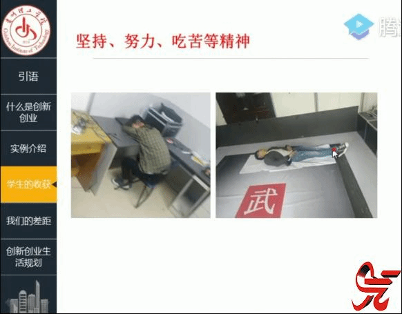 老师向我们展示了诸多我校在创新创业领域获得的成就,如目前我校在创新创业领域的国家级的项目已经累计256个;省级项目已经累计329个等。听到这里同学们热血沸腾,为成为理工学子而感到骄傲。