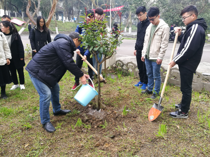 阳春三月,草木秀润,又到一年一度的植树节,在这个绿意盎然的节日,为进一步提高我院的绿化意识和文明素质,构建一个和谐绿色的文化校园,我院于3月12日9:50在一教后门草坪处,举行了主题为“绿色校园”的党员植树活动。我院副院长龙飞、党总支副书记周新国,全体师生党员和部分入党积极分子参加了此次活动。