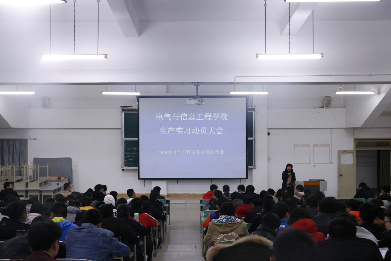 为顺利迎接五月份教育部本科合格评估预审核,3月6日晚上,我院在三教415 召开了2016级电气工程及其自动化专业生产实习动员大会。本次大会由电气工程及其自动化负责人高虹老师主持,电气工程及其自动化教研室主任黄政老师出席了此次大会。