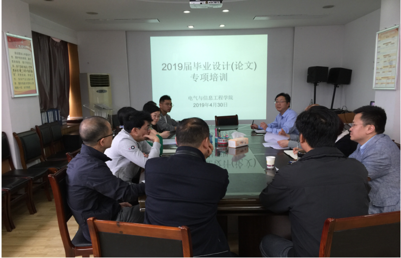 2019年4月30日下午,我院在主楼723会议室召开2019届本科生毕业设计(论文)指导老师专项培训会。会议由张均副院长主持,我院全体指导老师参加了会议。