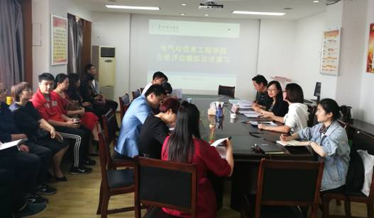 本网讯(电气与信息工程学院 刘帆)为迎接2019年5月20日贵州省教育厅对学校本科教学工作合格评估专家咨询会,做到评估知识人人应知,应会,根据《电气与信息工程学院评估知识、校情“人人过关”的工作方案》,确保访谈的顺利进行,电气与信息工程学院于5月15日邀请贵阳学院电子与通讯工程学院院长 陈雨青教授作为访谈专家,对我院全体教职工进行了一次合格评估模拟访谈演习。