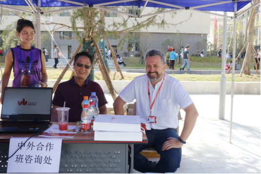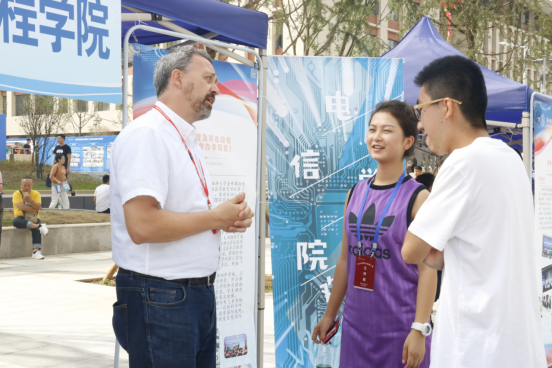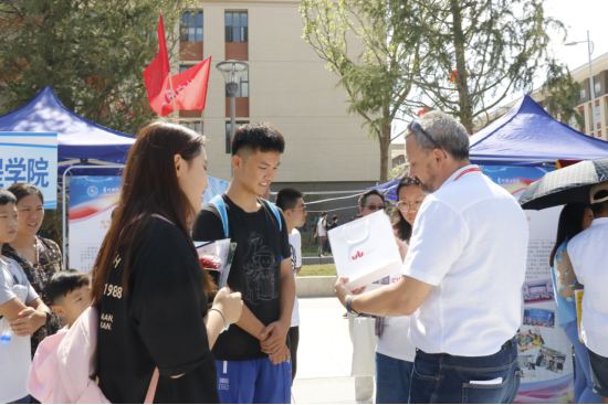 我院电自中外合作办学专业外教对于此次迎新也同样给予了大力的支持与帮助,专注且幽默的和每一位新同学交流,并为每一位前来报到的学子都送上了一份小礼物,为她们送去祝福,鼓励小萌新们要积极向上努力学习。