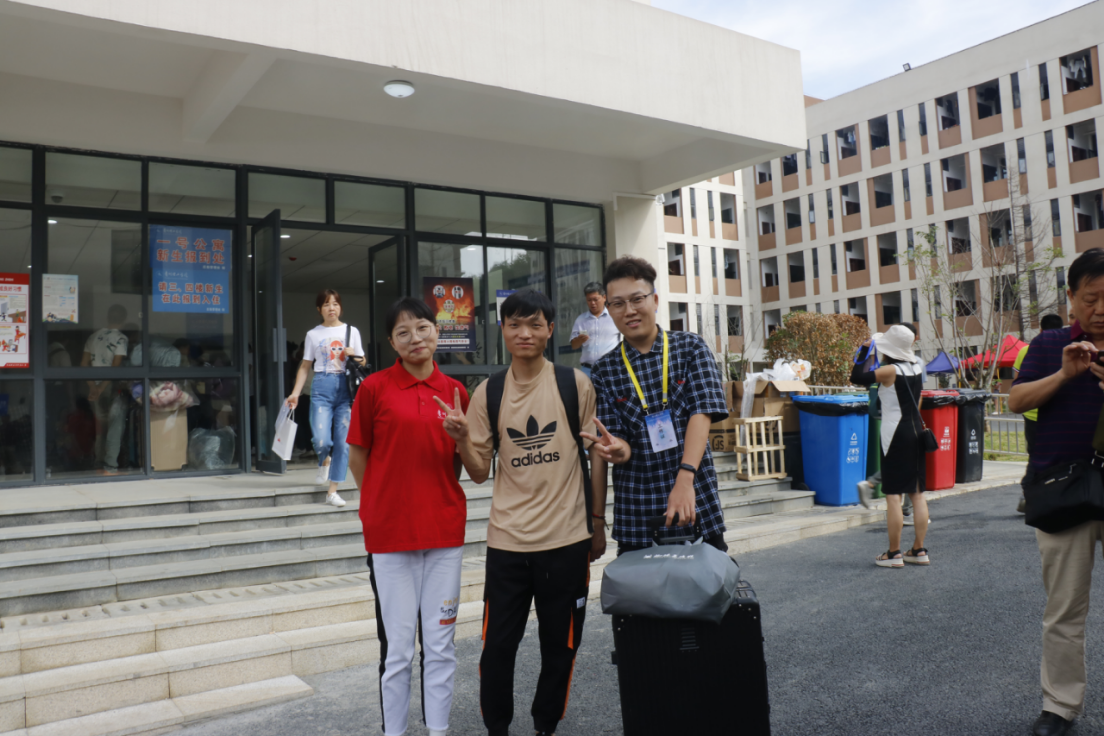 早上八时许,新生陆续来校报到。报到现场人声鼎沸,报到新生与指引报到的志愿者来来往往,他们秩序井然有序,气氛热闹非凡。