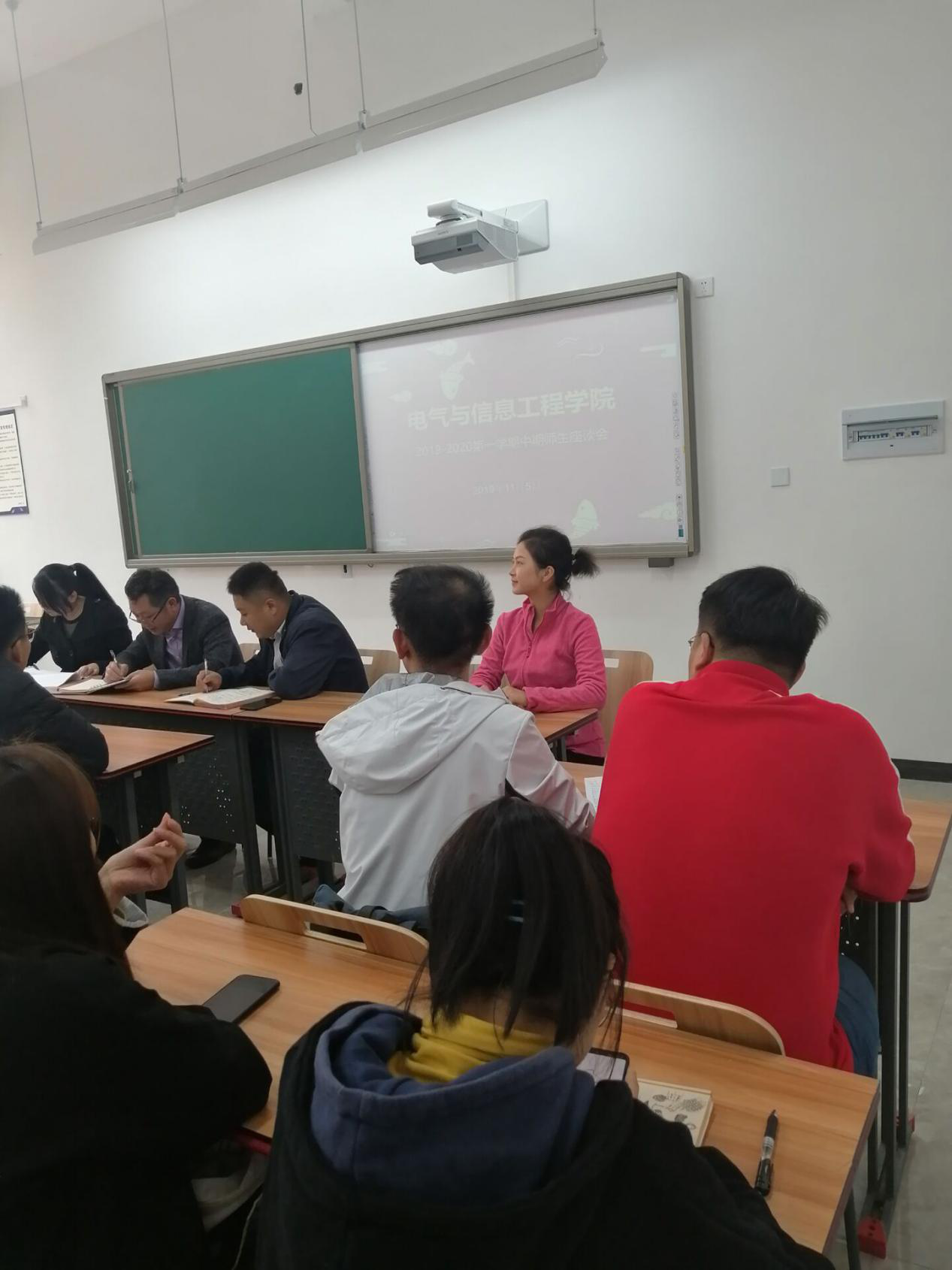 本网讯(电气与信息工程学院翁兴成)为进一步促进师生间交流与沟通,促进教学改革、完善教学管理,及时发现、研究和解决教学过程中存在的问题。2019年11月5日星期二中午,电气与信息工程学院期中教学检查师生座谈会在G1117教室召开,会议由副院长张均、党总支副书记周新国主持。电气与信息工程学院教务科张玉珠老师、学生科沈洁老师、以及19级各班学生代表参加了本次会议。