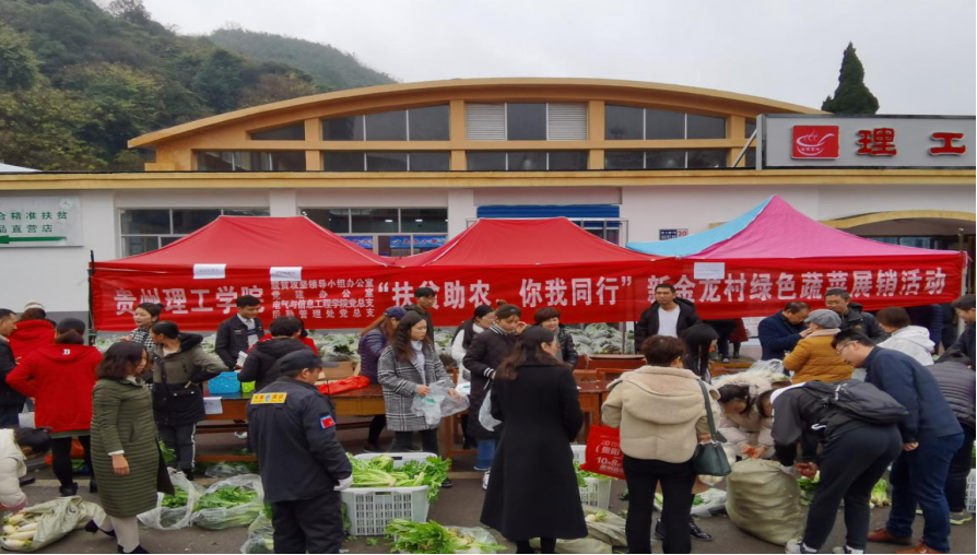 本网讯(电气与信息工程学院 程星晶)为着力做实贵州理工学院定向扶贫点产业发展工作,确保群众长期增收、稳步脱贫。今年,在学校领导的大力支持与帮助下,新金龙村已建成贵州理工学院重点帮扶产业蔬菜基地,并与学校达成蔬菜供应协议,推行“学校+合作社+农户”的“校农结合”供需模式。12月5日第一批绿色蔬菜走进学校食堂,初步实现了蔬菜畅销、贫困农户增收、学校师生受益的双贏局面。临近放假,由于学生就餐率的下降,目前学校各食堂对蔬菜的需求量急剧减少,而蔬菜基地仍然有16000斤蔬菜还未采摘。为保证蔬菜基地菜农利益不受损失,由贵州理工学院脱贫攻坚领导小组办公室、党建办公室、电气与信息工程学院党总支和后勤管理处党总支发起于12月25日、26日,在三食堂前开展“扶贫助农、你我同行”新金龙村绿色蔬菜展销活动,为蔬菜基地蔬菜实现兜底销售。
