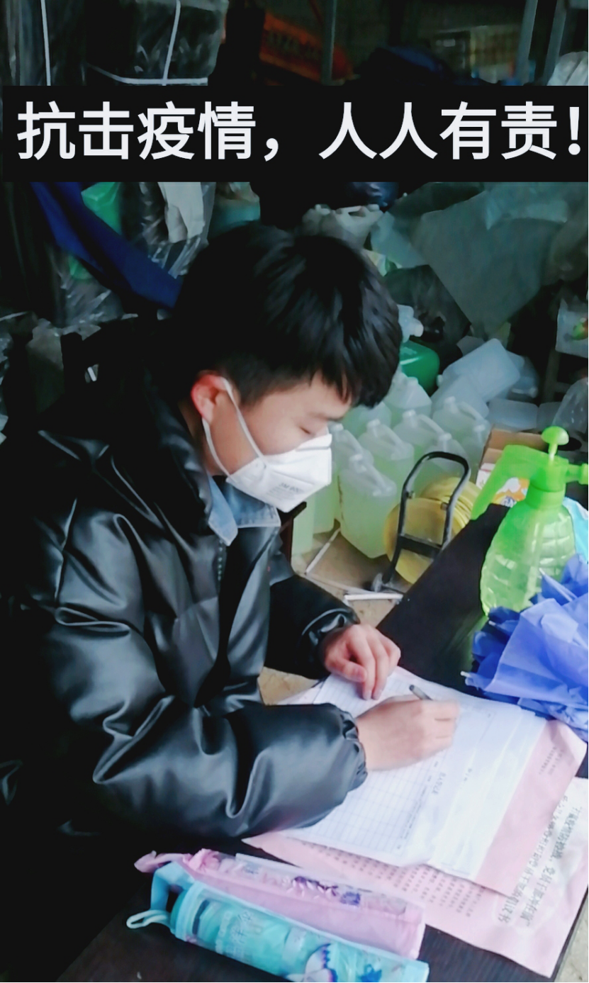 “共情”你我,众志成城共同战“疫”。他的父亲身患癌症卧病在床,自从放假回到家的陈昊,每日悉心照顾父亲,一步也不离开。但当疫情发生后,听说村委会成立了志愿服务小队,作为电气与信息工程学院党支部预备党员的他,肩负使命,积极参与志愿服务。在每天早上为父亲洗漱好,喂过早饭之后,陈昊便投入到一天的任务之中。每天早上去村里的主路口把守,不让外来人员进入,对本村来往的人员和车辆进行登记。他们志愿服务小队还组织了宣传车走街串巷宣传疫情知识,给村里的每个地方喷洒消毒水,用村里的大喇叭宣传疫情防护知识,引导大家戴口罩、勤洗手、多通风,回家后少外出,不走亲戚,不喝酒,不聚集。坚定“新型冠状病毒感染的肺炎”可防、可治、可控制的信念,消除大众恐慌心理。除了现实中志愿服务,网络中也是一个重要战斗场所,他积极转发人民日报官方消息来宣传科学知识,让身边的人不听谣不信谣。实时动态追踪的“疫情地图”紧紧揪着亿万群众的心,各部门多措并举遏制疫情蔓延,除夕夜多个地区医疗团队支援武汉……“全党全军全国各族人民都同你们站在一起,都是你们的坚强后盾”,习近平总书记的话鼓舞斗志、坚定信心。