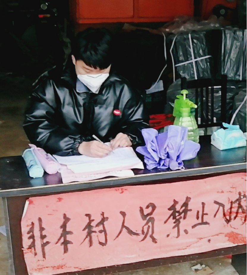 然而,他的父亲只给了他一个月尽孝的时间,在2020年2月1号永远的离开了他。来不及过多的悲伤,疫情当下,送走了父亲,他又投入到工作中去。每天积极完成任务,即使下雪时再寒冷的北风,也吹不灭共产党人志愿服务炽热的心。在路口,对来往车辆进行消毒;在村里,对村中残疾家庭和孤寡老人家庭进行全面消毒防护,并配发口罩。活动中大家做的认真细致,对排查过程中发现没有做好防护的人员进行了讲解,让他们从思想上重视起来,这关系到家人的安全,关系到全国人民的安全,为了大家的安全能不出门就不出门!陈昊说:“我们多走一步,多摸排宣传一户,其他人就少走一步,疫情防控的工作就向前一步。面对疫情,我们作为共产党员,就一定要坚守使命,以实际行动践行初心使命,以担当作为彰显新时代共产党员的风采,让党旗在防控疫情斗争第一线高高飘扬!让党徽在一线闪光!疫情无情人有情,致敬我们可爱的志愿者们!致敬在一线的医护人员们!致敬奋战在疫情防控一线的共产党员!”