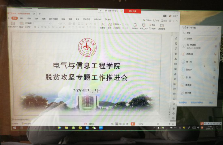 本网讯(电气与信息工程学院 刘帆)为深入学习贯彻落实中央和省委以及学校脱贫攻坚工作总体决策和部署,我院于2020年3月5日下午,召开脱贫攻坚专题工作推进视频会议。会议由党总支书记王婷婷主持,全体院领导、党总支全体委员、支部书记及授委员会全体成员以及各教研室负责人参加了会议,会议还特邀湄潭复兴镇新金龙村驻村第一书记苏凡竣参加。