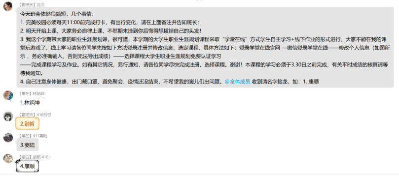 新学期第一天,学院党政领导、学院督导组、教研室主任、各班辅导员班主任进入线上课堂,对任课教师专业班级全覆盖查课,检查新学期教师们网络课程授课情况和学生到课情况。