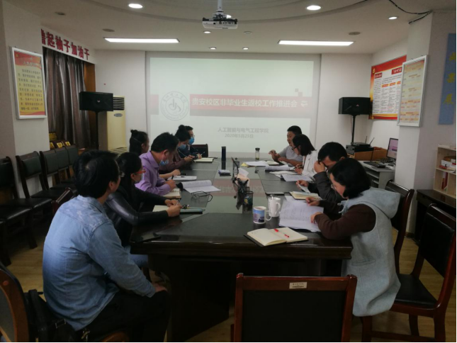 按照学校通知,我校贵安校区非毕业生将于26日、30日分批返校,为全面落实中央、省委省政府、学校关于统筹做好疫情防控的工作部署,保证我院学生返校工作有序开展,做好周密部署、压实工作责任、做好科学防控,筑牢广大学生生命健康安全的校园防线,做好教育教学相关工作,5月25日,我院召开贵安校区非毕业生返校工作推进会,学生科、教务科全体成员、19级全体辅导员班主任参加会议,学院领导出席会议。