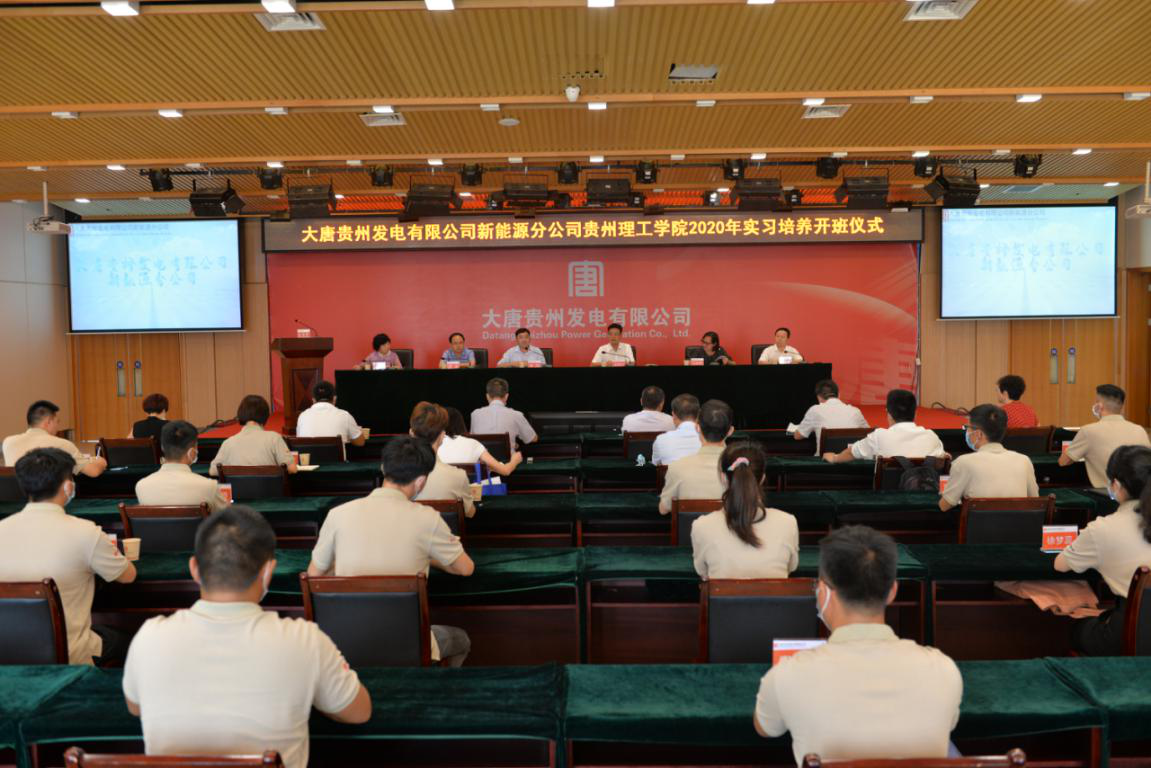 本网讯(人工智能与电气工程学院 刘帆)8月13日下午,贵州理工学院与大唐贵州发电有限公司新能源分公司2020年实习培养开班仪式在大唐贵州发电有限公司举行。校党委书记曾羽,大唐贵州发电有限公司总经理刘建祥、副总经理韩旭东、新能源分公司总经理王昭力出席开班相关活动,我院党政领导班子及2020年“大唐定制班”学生参加了此次活动。