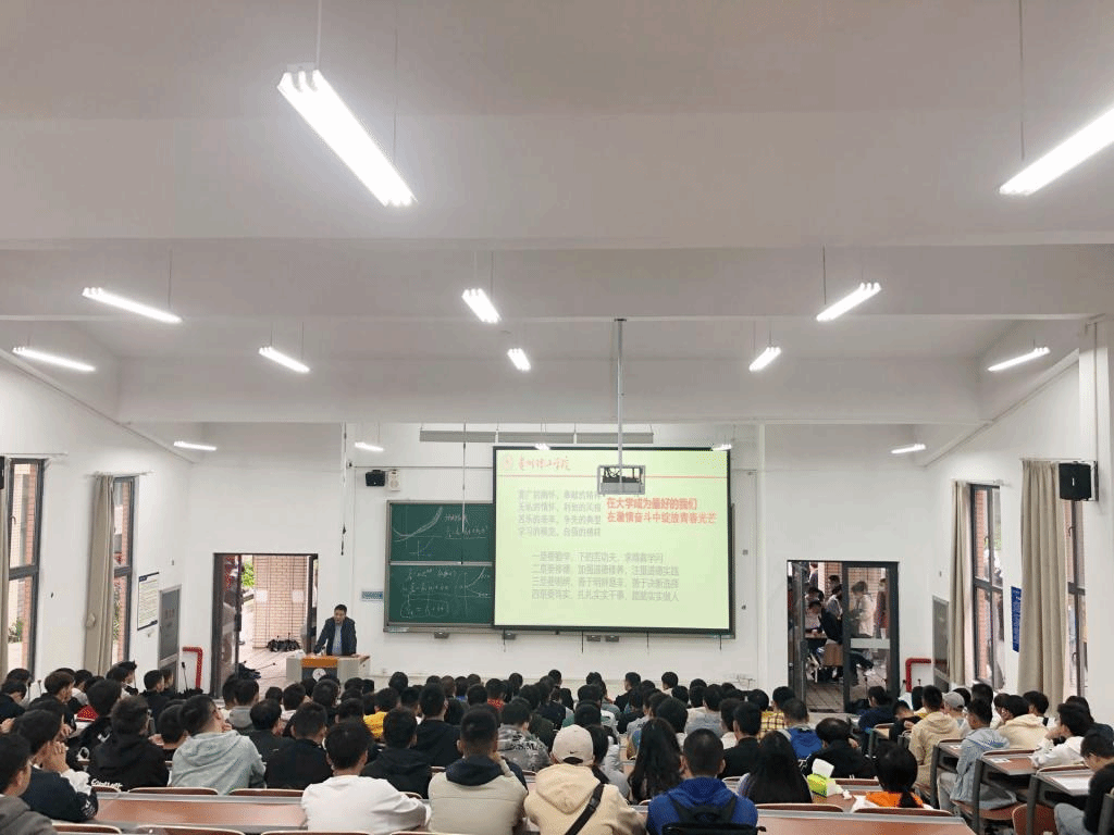 本网讯(人工智能与电气工程学院 董云华)为做好新生适应性教育,引导新生树立远大理想,合理规划大学学习生活,9月19日我院于贵安校区开展了新生入学教育讲座。我院党总支副书记周新国、20级辅导员沈洁出席讲座,20级全体新生参加讲座。